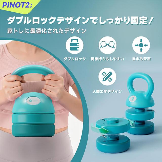 ・スプリングロックを押して、ケトルベルのハンドルを回すことで、重量を素早く簡単に調整できます。
