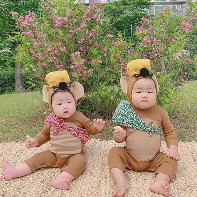 柔らかな綿素材を使用しており、赤ちゃんの肌に優しく、快適な着心地を提供します。長袖のロンパーススタイルは秋の涼しい日にも適しており、スナップボタン付きで着脱が簡単です。頭部にはチーズの形をした愛らしい帽子が付いており、記念写真や寝相アートにも最適です。