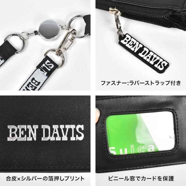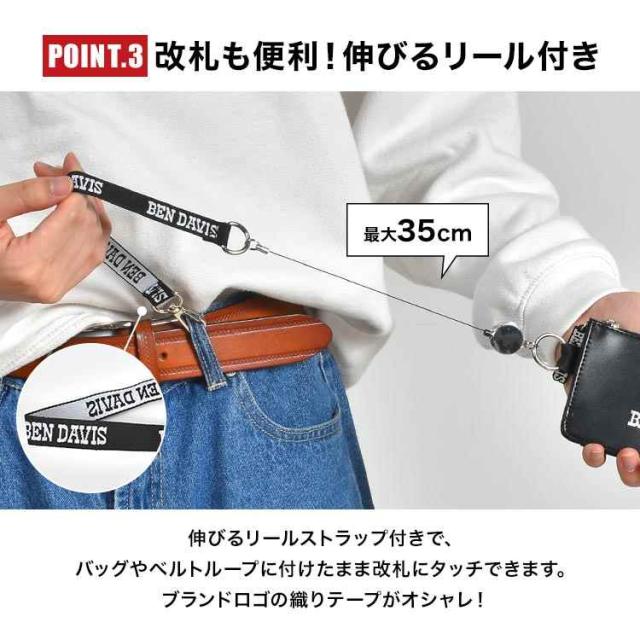 パスケース 小銭入れ リール付き BEN DAVIS ベンデイビス ブランド BDW-8397 メンズ レディース 高校生 中学生 大学生 定期入れ ICカード 3枚 コインケース カード入れ キャッシュレス 財布 小物入れ 男性 男子 通学 通勤 おしゃれ ブラック ベージュ ストラップ 落下防止