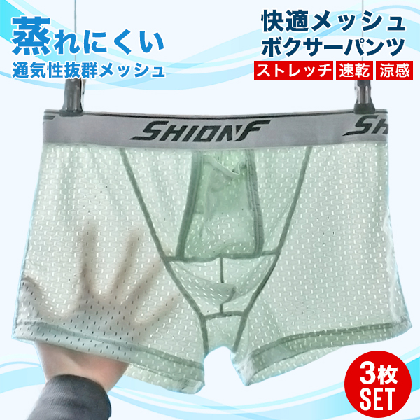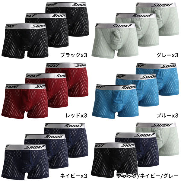 ボクサーパンツ 3枚セット メンズ メッシュ 前開き 分離型 快適 蒸れない 通気性 ドライ ストレッチ 下着 ギフト 送料無料