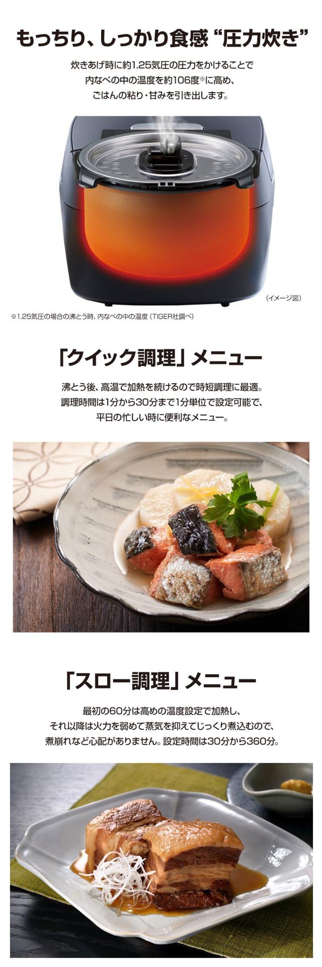 メーカーのフラグシップモデルである土鍋圧力IHジャー炊飯器を参考にした炊飯プログラムを採用。