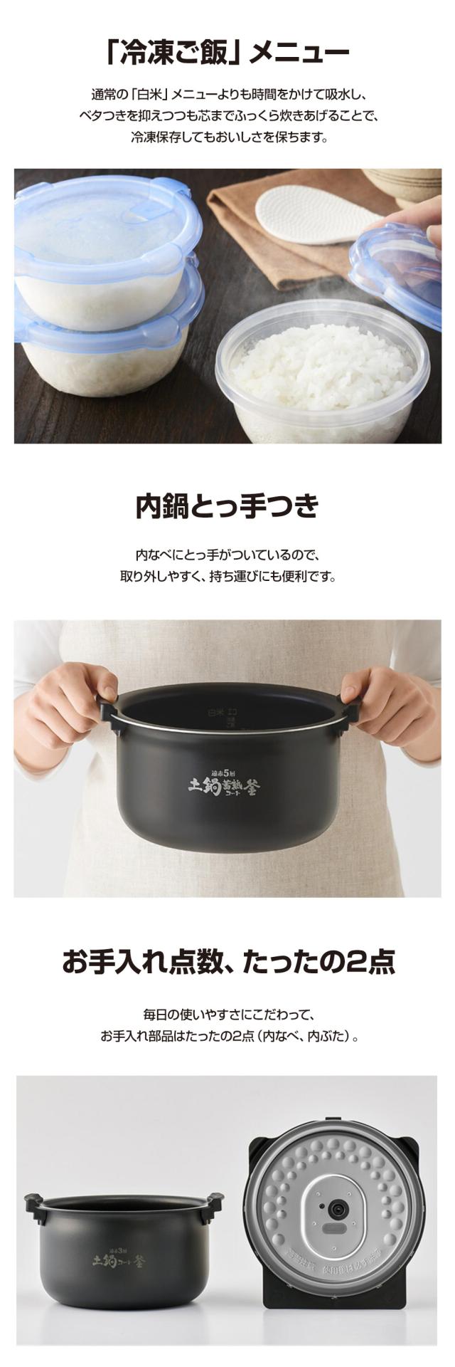 * 内釜仕様:遠赤5層土鍋蓄熱コート釜