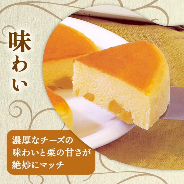 ・北海道産のクリームチーズと、栗の甘露煮を使用したベイクドチーズケーキです。