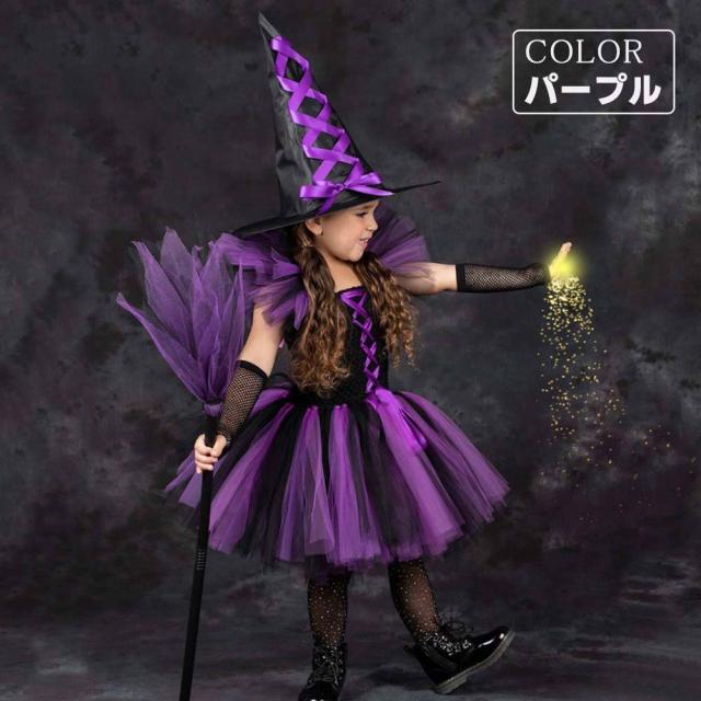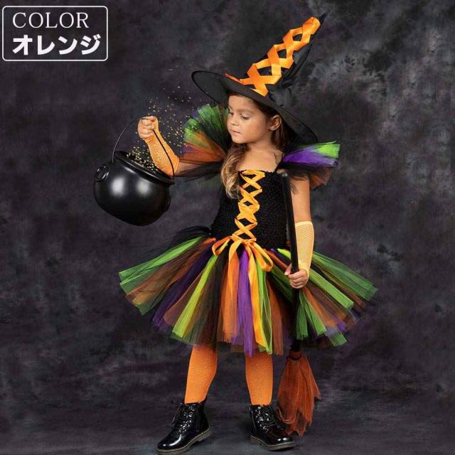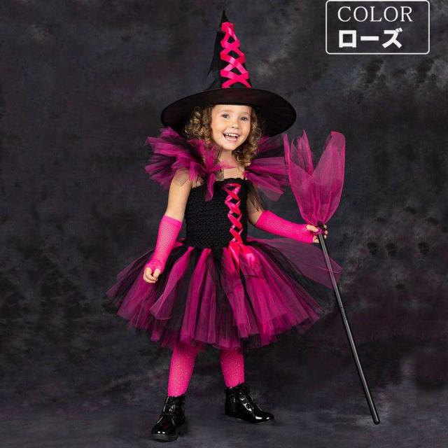 ハロウィン 衣装 女の子 魔女 翼 3点セット コスプレ コスチューム コスチューム衣装 衣装 セット ダンス衣装 フォーマルドレス カラフル チュールワンピース 子供 キッズ 変装