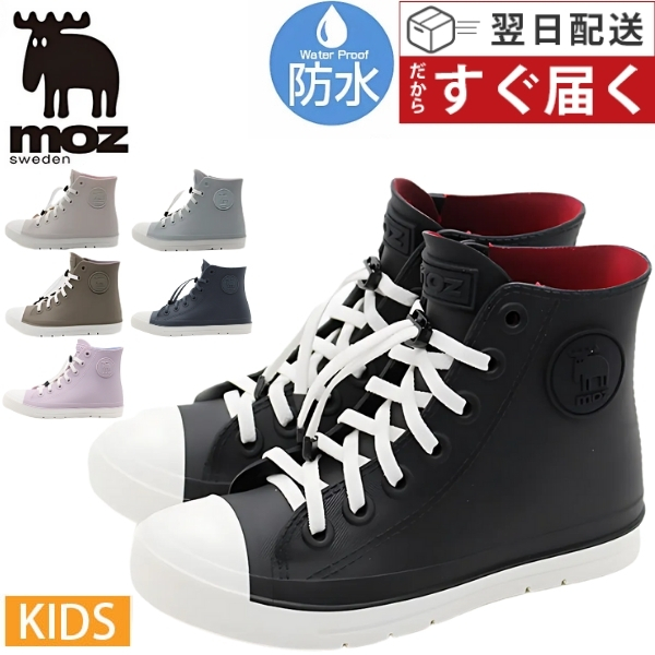 moz レインシューズ キッズ 子供 長靴 ハイカット スニーカー 黒 ブラック カーキ ネイビー 雨 防水 レインブーツ レインスニーカー 男の子 女の子 おしゃれ 通学 靴 モズ moz mz7017