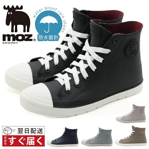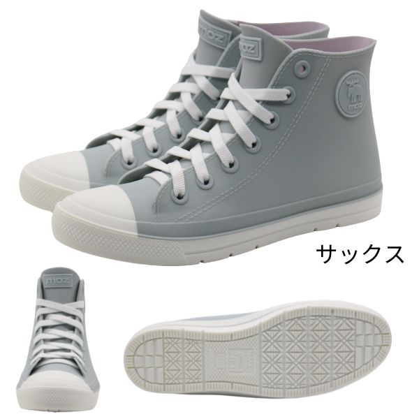 moz モズ レインシューズ レインブーツ スニーカー レディース 靴 長靴 ショート 黒 サックス ベージュ 防水 ゴム紐 雨 ハイカット 雨の日 シンプル 雨靴 学校 通学 通勤 レインスニーカー エルク 北欧 キャラクター おしゃれ ブランド ギフト MZ-8017 ギフト