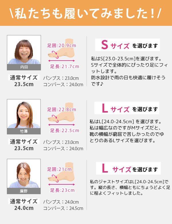 取り扱いサイズ:S[23-23.5cm] M[23.5-24cm] L[24-24.5cm] LL[24.5-25cm]