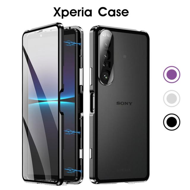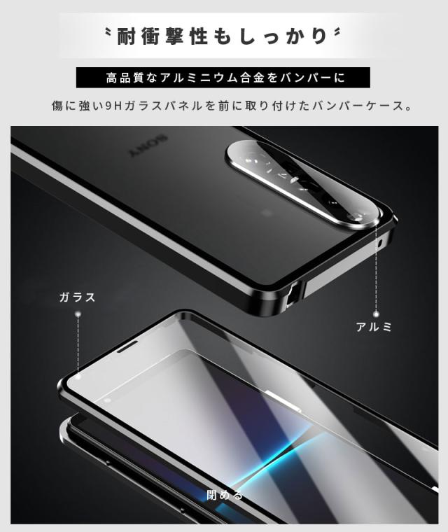 スマホケース Xperia 1 IV ケース マグネット アルミ Xperia 5 IVケース ガラスケースXperia 1 Vケース スライド式 Xperia 10 viケース アルミニウムバンパー Xperia 5 V カバー ロック式 磁石 バンパー エクスペリア10 Vケース xperia 1 VIケース 磁石吸着