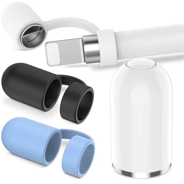 Apple Pencil キャップ 第1世代 アップルペンシル キャップ シリコンキャップ 紛失防止 カバー タッチペン交換用 Apple Pencil 第一世代対応 充電端子用 ipad ペン キャップ 4点セット (White/Black/Blue,