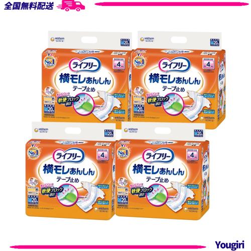 ◆商品名:【ケース販売】ライフリー テープ止めおむつ 横モレあんしんテープ止め Mサイズ 80枚(20枚×4)4回吸収 【寝て過ごすことが多い方】