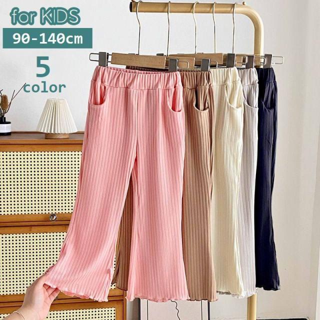 ロングパンツ ワイドパンツ 長ズボン キッズ 子供服 女の子 ボトムス リブニット メロウフリル ウエストゴム ポケット付き ジ