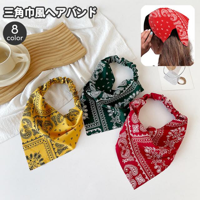 ヘアバンド 三角巾 レディース ゴム ヘアターバン バンダナキャップ バンダナ風ヘアバンド ペイズリー柄 おしゃれ かわいい 調