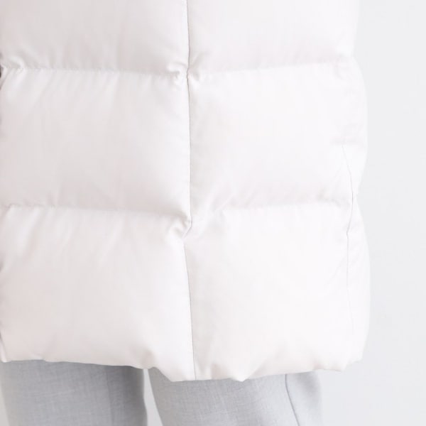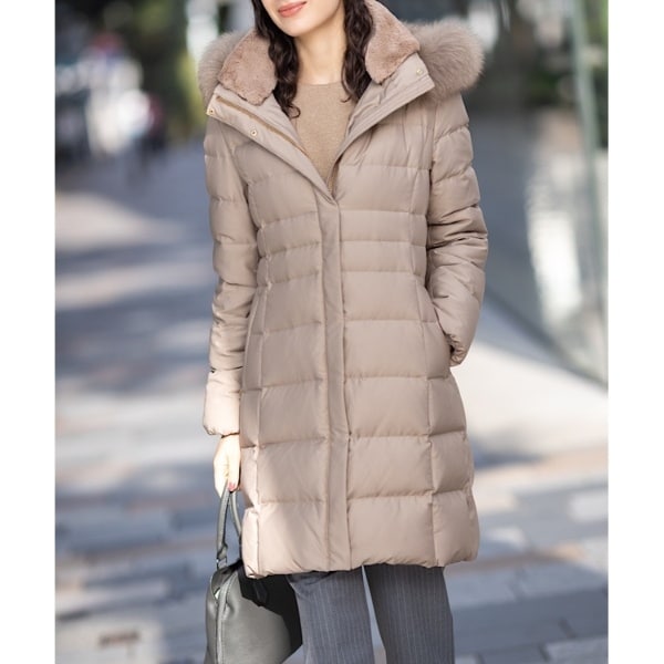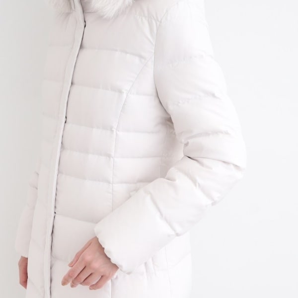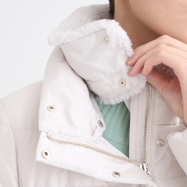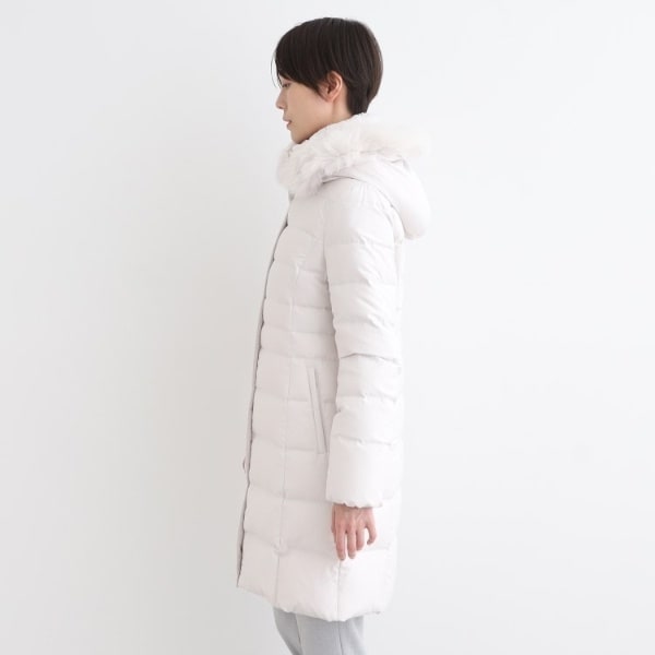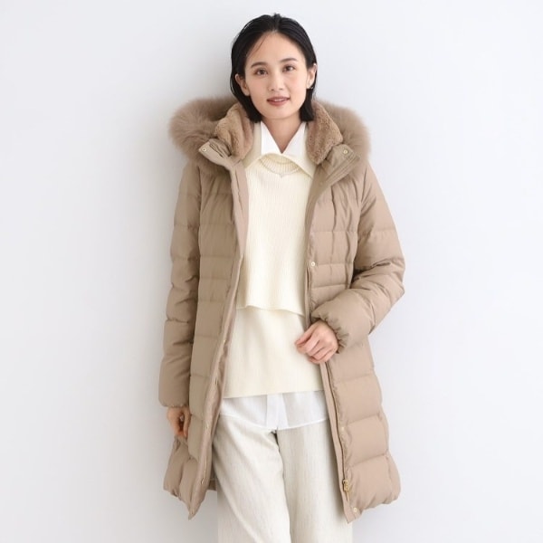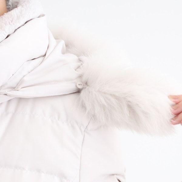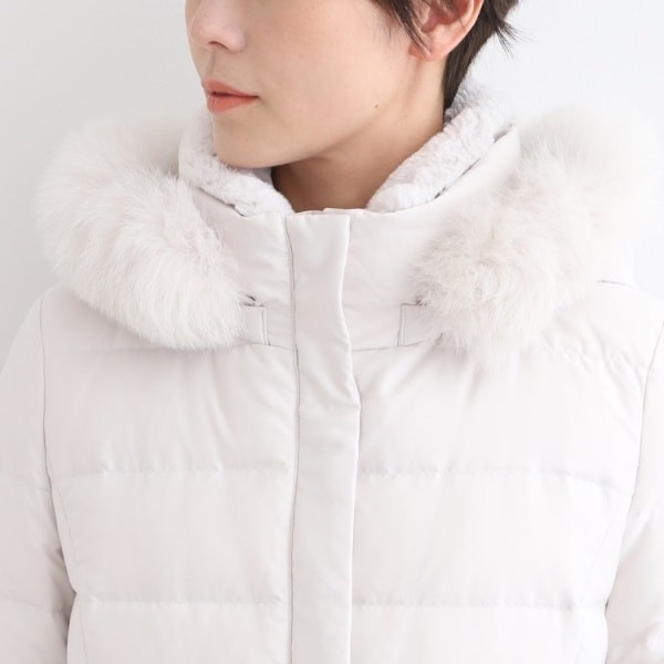 ■素材:ライトグレー(011) 表地:本体 ポリエステル100% リブ部分 アクリル90% 毛10% フェイクファー部分 ポリエステル100% ファー部分 毛皮(ホワイトフォックス) 裏地:ポリエステル100% 詰物:ダウン90% フェザー10%、ブラック(019) ネイビー(094) キャメルブラウン(641) 表地:本体 ポリエステル100% リブ部分 アクリル90% 毛10% フェイクファー部分 ポリエステル100% ファー部分 毛皮(ブルーフォックス) 裏地:ポリエステル100% 詰物:ダウン90% フェザー10%