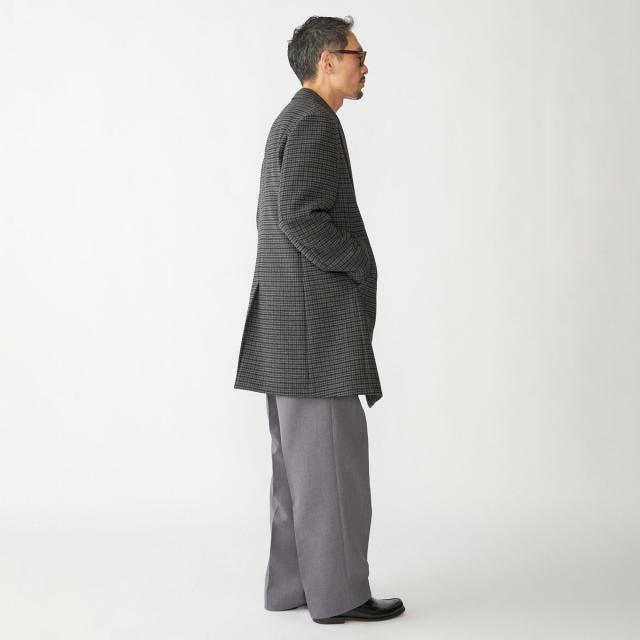 今までのクラシックなデザインからラペル幅を細くし、ポケットは腰ポケットのみ、ミニマルでモダンなチェスターコートへアップデート。
