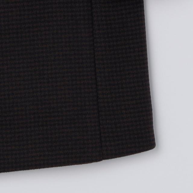 今シーズンのポイントはやや細番手の紡毛糸を使用し、しっかり織り上げた後にプレスをしっかりと入れたメルトンにしています。