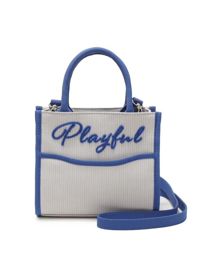 チェーン刺繍のロゴがインパクトのあるミニトートバッグ。