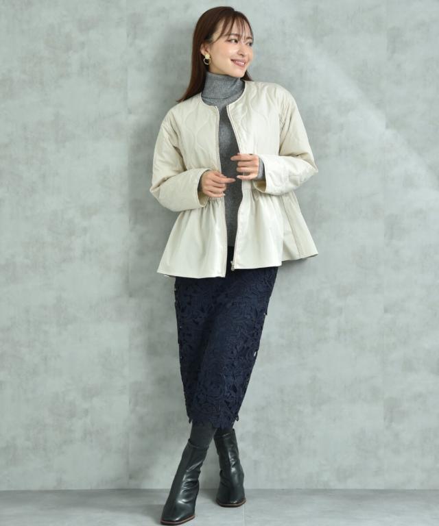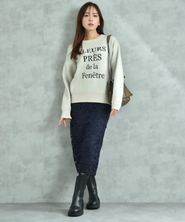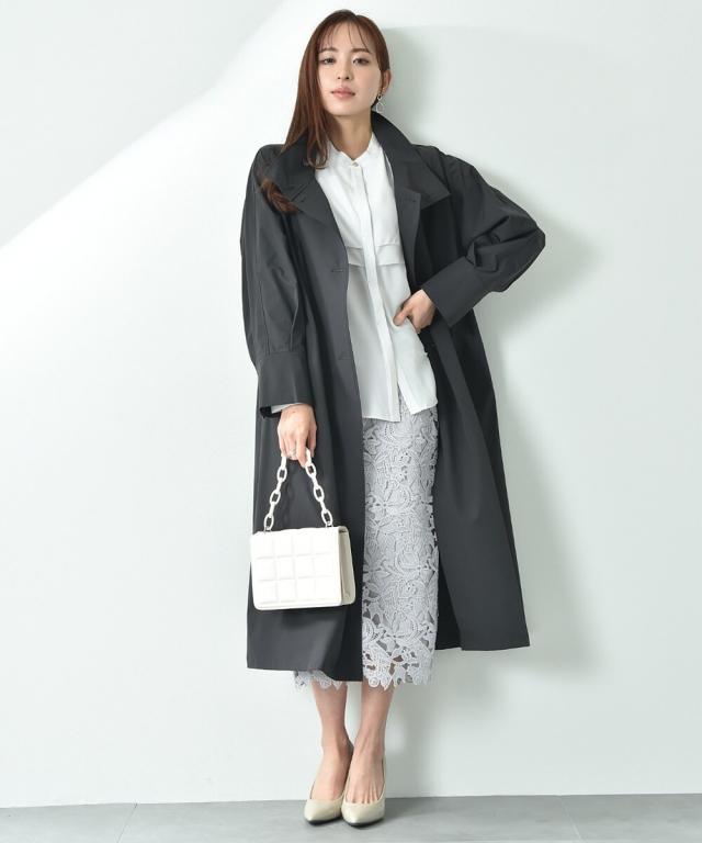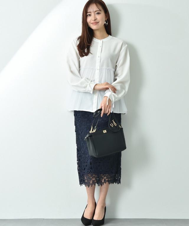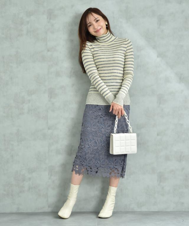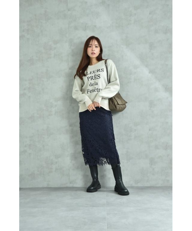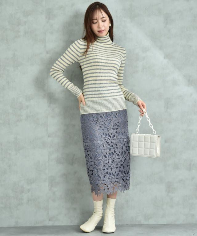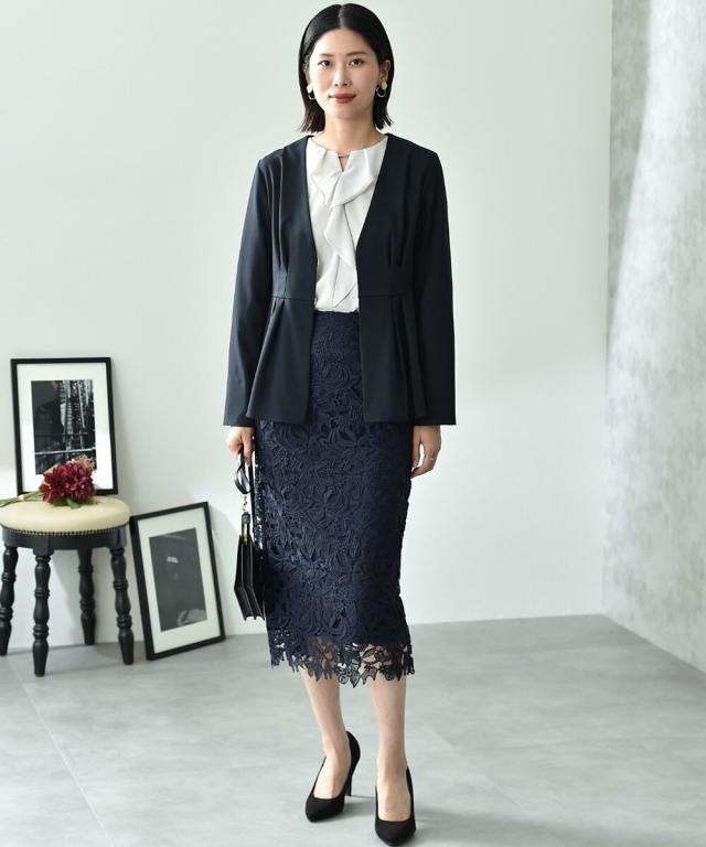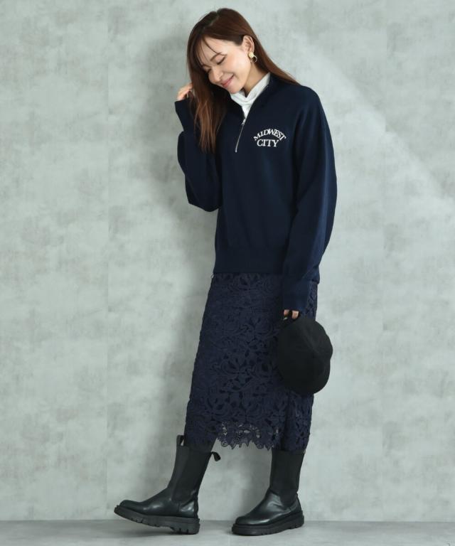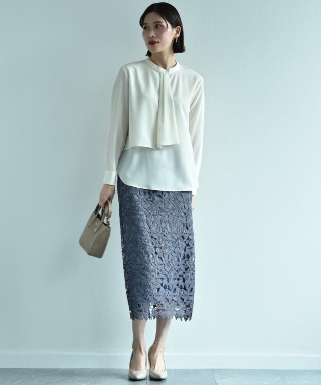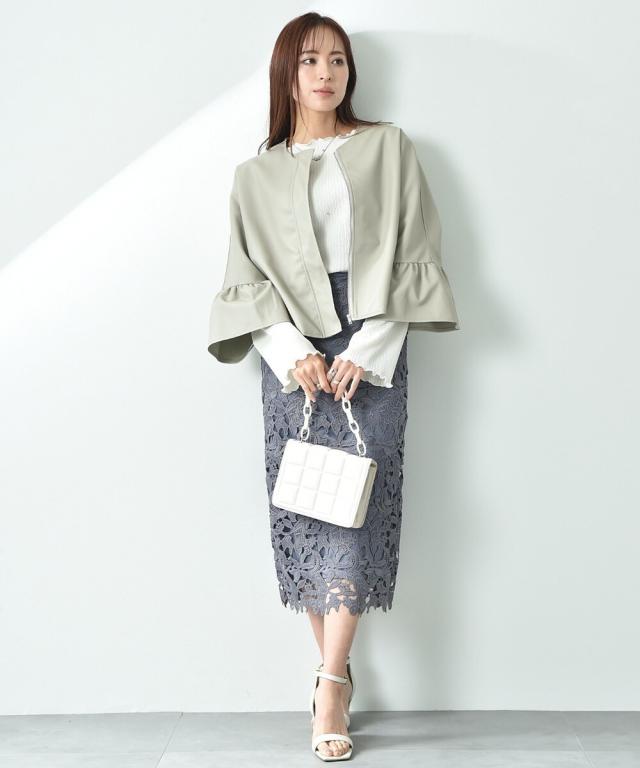 人気のレーススカートに新色が仲間入り!優しいネイビーはより上品な印象に演出してくれるお勧めななカラーです。素材はケミカルレースを使用。高級感のある見え方が魅力です。
