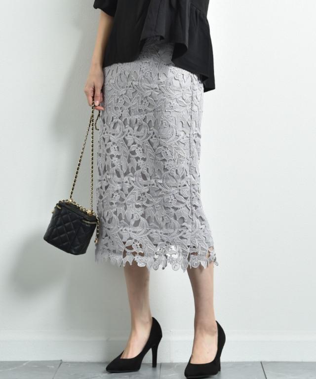 ケミカルレースBACKファスナータイトスカート