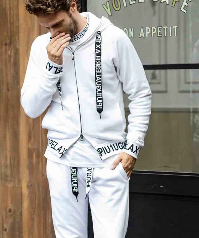 ウノピゥウノウグァーレトレ リラックス(1PIU1UGUALE3 RELAX)/1PIU1UGUALE3 RELAX ワイドスピンドルロゴスウェットパンツ