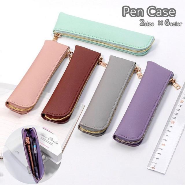 ペンケース 筆箱 筆入れ レディース メンズ 男女兼用 ユニセックス 大人 PUレザー レザー調 スリム コンパクト 軽量 無地