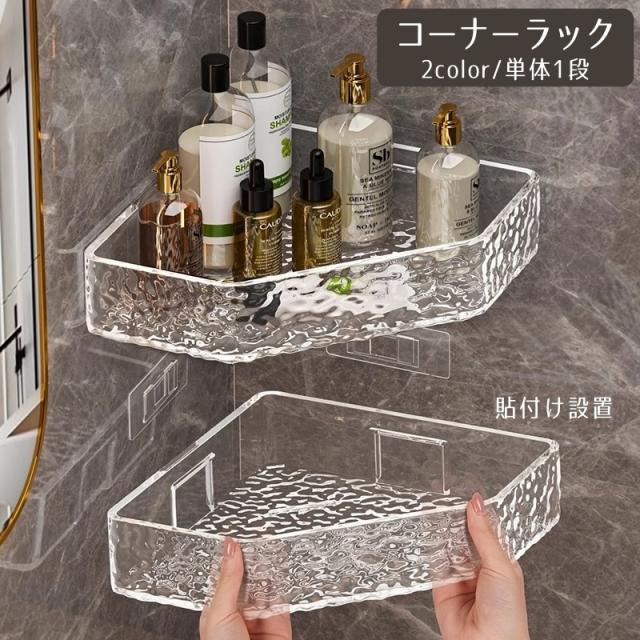 コーナーラック 単体一段 ウォールラック ウォールシェルフ 壁面収納 整理棚 バスルーム 浴室 お風呂場 洗面 三角 透明 クリ