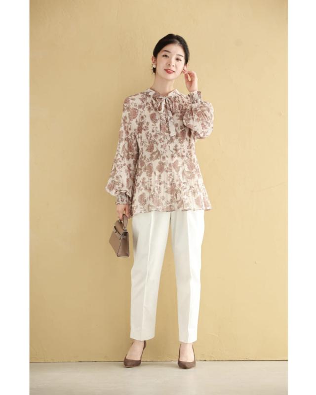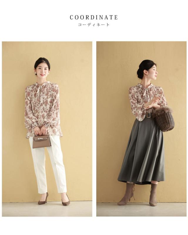 wkj00106 新作 新着 再入荷 CAWAII FRENCHPAVE フレンチパヴェ エレガント ベーシック カジュアル 可愛い かわいい カワイイ おしゃれ オシャレ お洒落 個性 個性的 定番 ベーシック 大人かわいい 大人可愛い 上品 女性らしい デザイン スタンダード ナチュラル きれいめ キレイめ シンプル フェミニン レディース レディースファッション 大人 ママ ミセス 30代 40代 50代 60代 ロマンティック 花柄 細やか プリーツ ブラウス トップス 長袖 長そで ロング袖 ポワン袖 ボリューム袖 リボン アコーディオンプリーツ ふんわり クラシカル スッキリ見え 透け感 Sサイズ Mサイズ Lサイズ 2Lサイズ 3Lサイズ ワンサイズ フリーサイズ フリー 小さめ 小さめサイズ 小さい 小さいサイズ 低身長 痩せ ほっそり 小柄 細身 標準サイズ 大きめシルエット 大きい 大きめ ビッグシルエット ぽっちゃり F サイズ自由 薄手 春 秋 冬 春服 春物 秋服 秋物 冬服 冬物 楽ちん 楽チン ラクラク 楽々 着回し ベージュ 柄 総柄 花柄 フラワー柄 日常着 普段着 日常使い おでかけ 旅行 家族旅行 女子会 祝賀会 同窓会