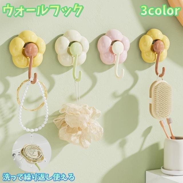 ウォールフック 壁掛けフック 単品 吸盤式 フラワーフック 省スペース 洗面所 キッチン 玄関 浴室 子供部屋 収納 ホルダー