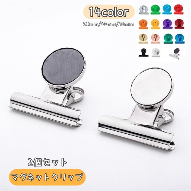 マグネットクリップ 2個セット メモクリップ 紙挟み 袋止め 袋どめ カラフル キッチンクリップ メモ 文房具 掲示板 シンプル