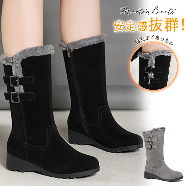 店長イチオシ ムートンブーツ ロングブーツ レディース 裏起毛 ウェッジソール 裏ボア 大きいサイズ 暖かい 無地 スエード調 ロング丈 防寒 寒さ対策