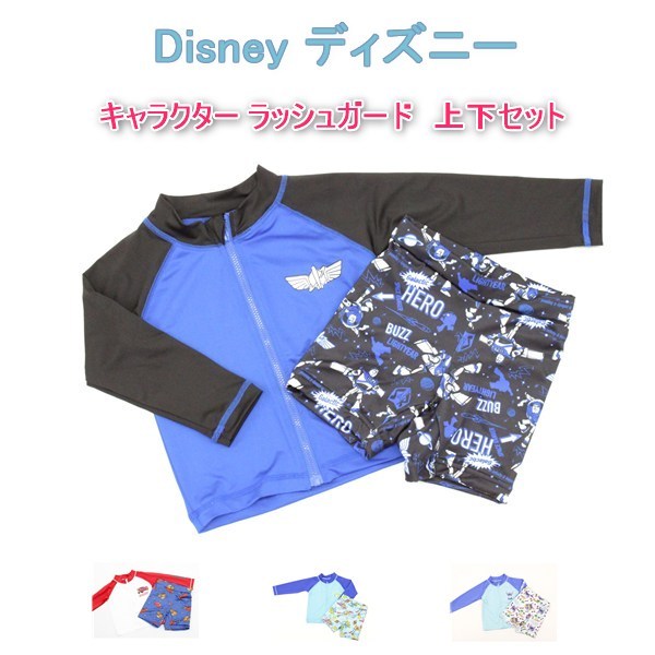送料無料 アウトレット Disney ディズニー キッズ 水着 キャラクター ラッシュガード 上下セット 夏 #58675 WP235