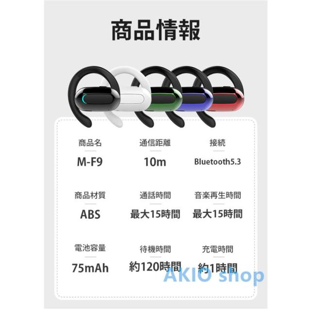 ワイヤレスイヤホン PSE認証済み 右耳片耳 Bluetooth5.3 耳掛け式 快適なフィット 自動ペアリング 軽量設計 高音質 長時間再生 低遅延 90°回転可能 柔らかい質感