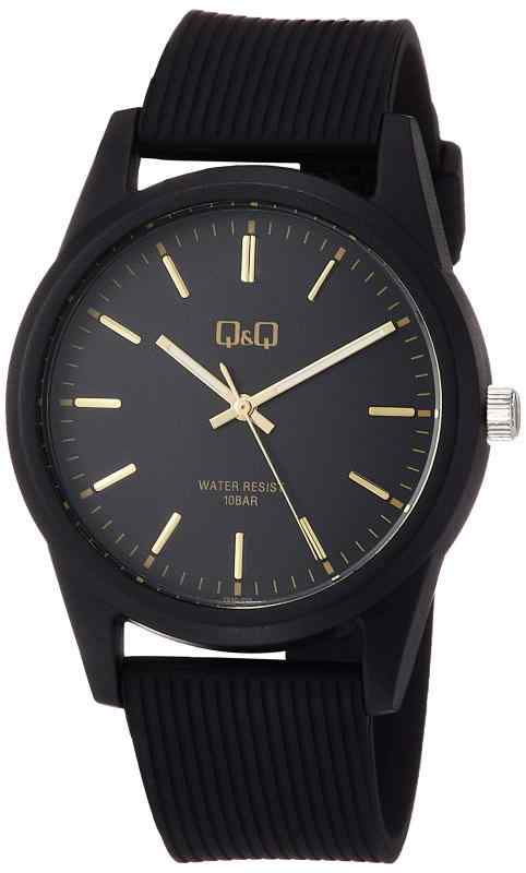 [シチズン Q&Q] 腕時計 アナログ 防水 ウレタンベルト (ブラック/ゴールドバー)