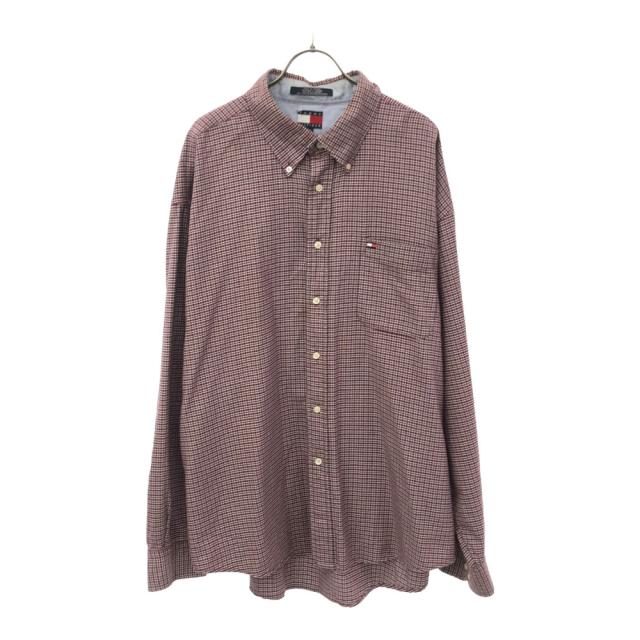 トミーヒルフィガー 90s フラッグタグ チェック 長袖 ボタンダウンシャツ XXL レッド系 TOMMY HILFIGER ビッグサイズ オールド メンズ