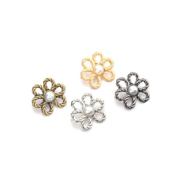 【パッケージの詳細】花ボタン4セット、4色:明るいシルバー*1、明るいゴールド*1、ブラック*1、せいどう*1