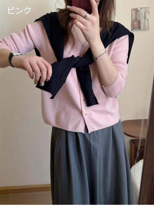 トップス 長袖 シンプル ニットカーディガン Vネック ニットコート カーディガン 通勤 レディース 春 秋 ニット ニットカーデ 無地 おしゃれ カジュアル dk040m3m3m5