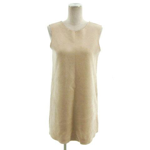 【中古】ザラ ZARA カットソー チュニック丈 ノースリーブ バックオープン スウェード調 ベージュ S レディース