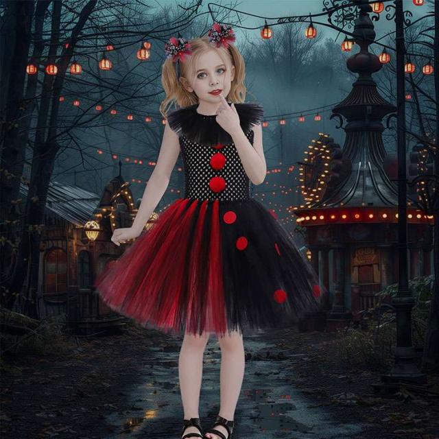 ハロウィン 衣装 ドレス 女の子 ピエロ ブラック レッド コスプレ コスチューム コスチューム衣装 衣装 セット ダンス衣装 チュール ドレス ワンピース 子供 キッズ ガールズ 変装 仮装 演出 発表会