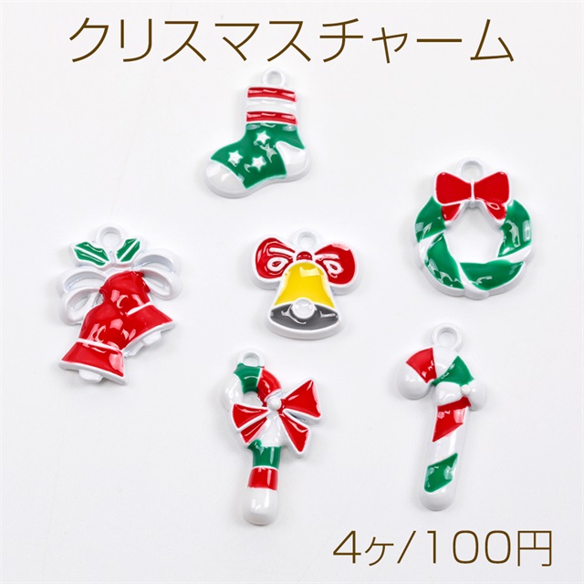 クリスマスチャーム 靴下チャーム ベルチャーム リースチャーム ステッキチャーム クリスマスエポチャーム カン付き (4ヶ)