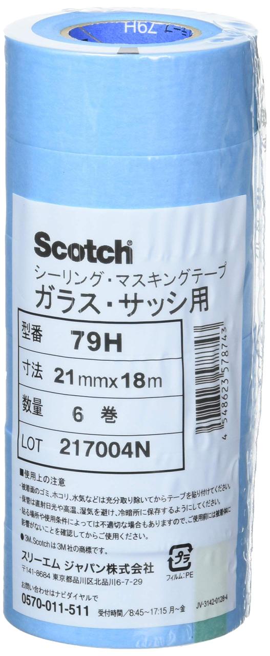 ◆商品名:3M スコッチ マスキ ングテープ ガラス用 79H 21mm幅x18M 6巻入 79H 21X18