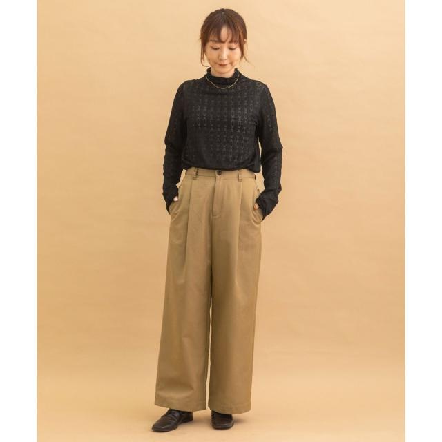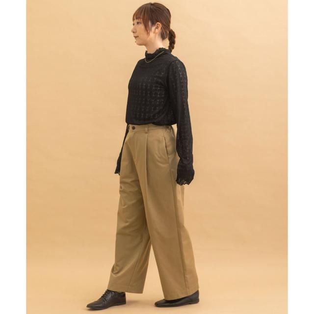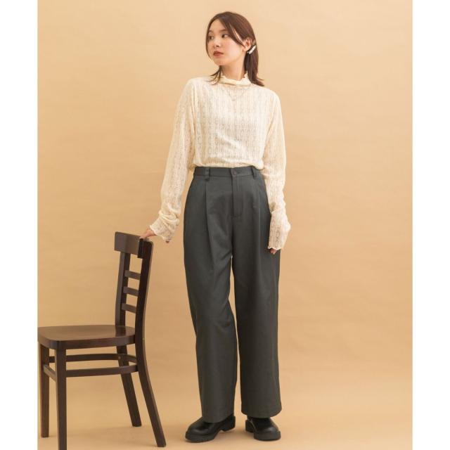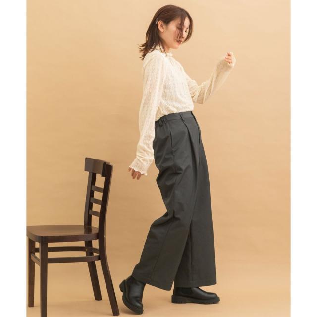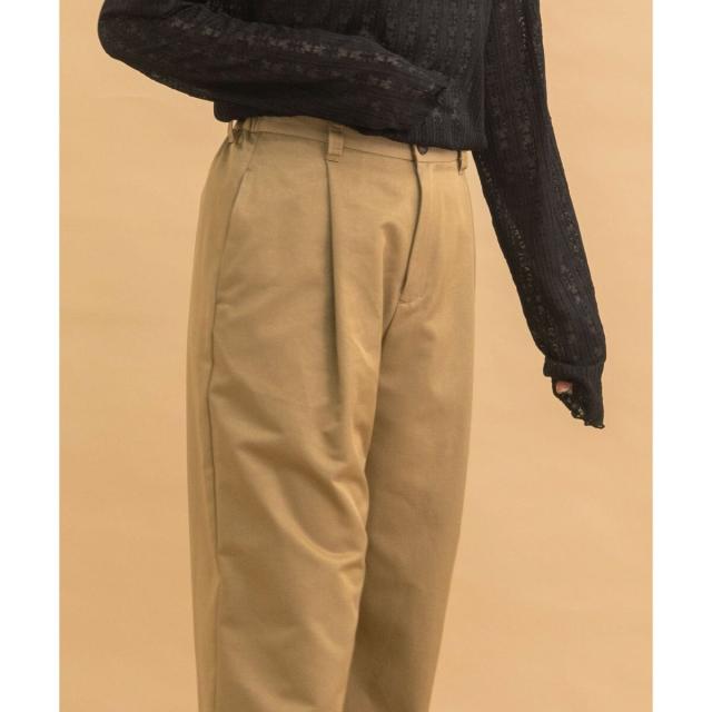 ・トップスをインしてもスタイリングが引き締まるハンサムなパンツ。どのアイテムにも合わせやすいのが魅力です。
