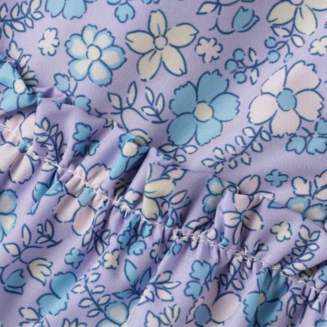 ギャザーが入った可愛らしいシルエットとフラワープリントが目を惹くジップブルゾン。