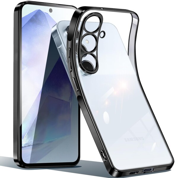 Galaxy A55 5G ケース クリア ギャラクシー a55 5G スマホケース 透明 TPU 薄型 軽量 耐衝撃 メッキ加工 ソフトケース 人気 保護カバー (ブラック)