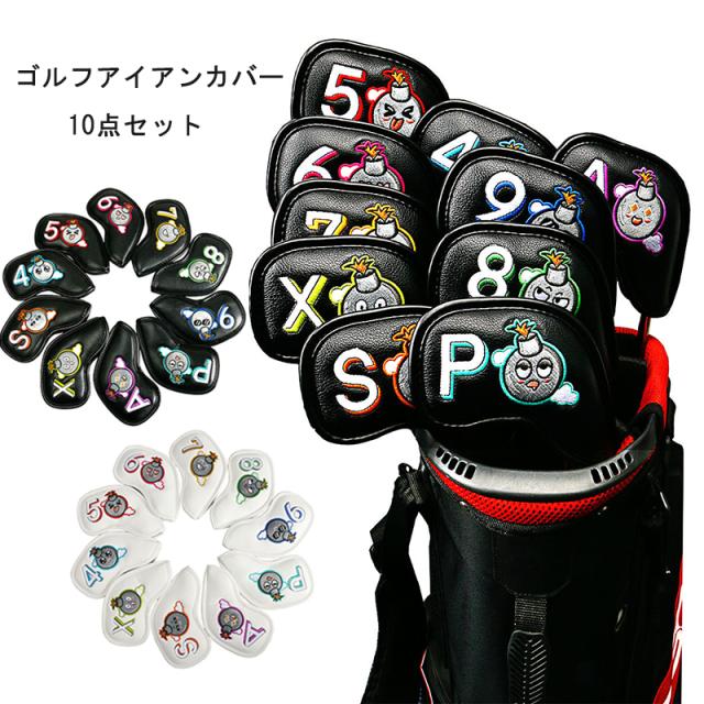ゴルフアイアンカバー アイアンカバー ゴルフウッドカバー ヘッドカバー 防水 高級PU素材 ゴルフカバー ゴルフ用品 10点セット 番手付き 保護