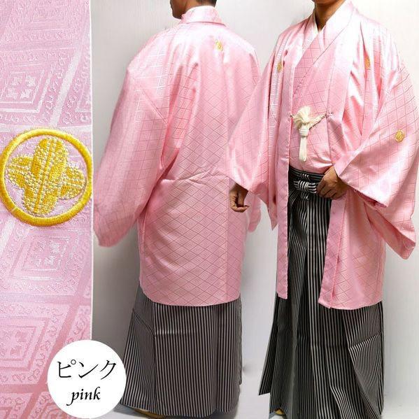 【レンタル】 紋付袴 羽織 着物 袴 12点 フルセット ピンク カラー紋付 袴 成人式 卒業式 結婚式 【 紋付 男性 男 メンズ
