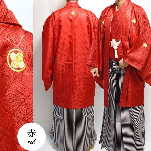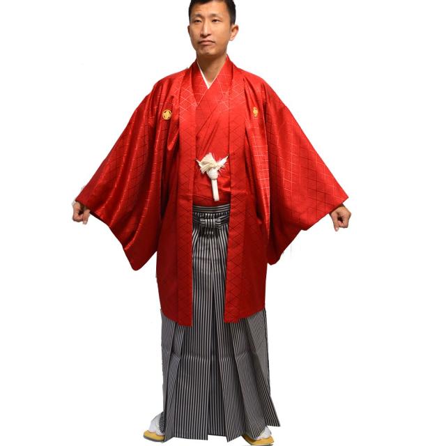 【レンタル】 紋付袴 羽織 着物 袴 12点 フルセット 赤 カラー紋付 袴 成人式 卒業式 結婚式 【 紋付 男性 男 メンズ