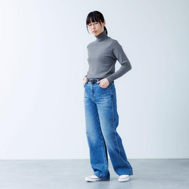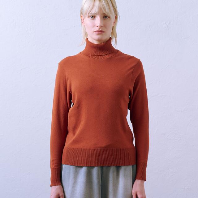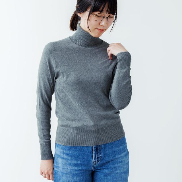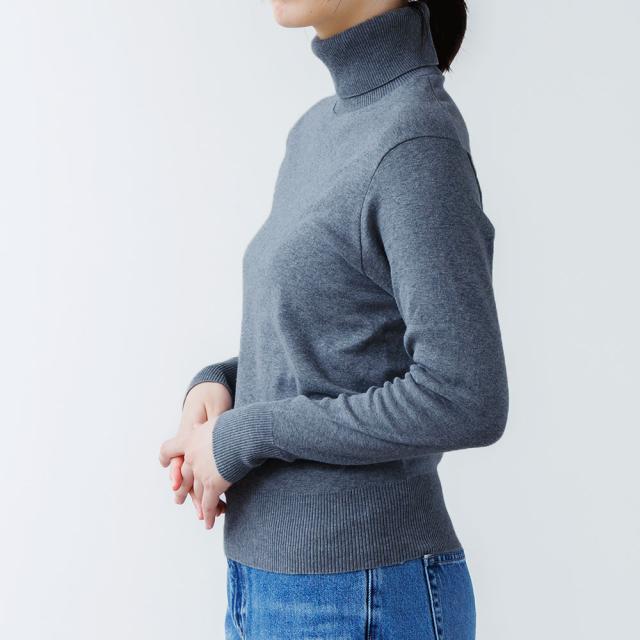 程よくフィットするタートルネック。コットンニットなのでチクチク感も気になりません。