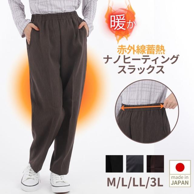 【カラー】 ブラック チャコールグレー コゲチャ【素材】 ポリエステル【柄】 無地【生産国】 日本【テイスト(ファッション)】和風【洗濯表示】 家庭洗濯【商品説明】 暖か!赤外線蓄熱ナノヒーティングスラックス!安心安全高品質な日本製です。太陽光の赤外線を効率よく熱に変換する事が出来る素材。外出先でもお家でも暖かい快適ズボンさらに股下60cmで届いてすぐに履けます!裾直し不要で楽々嬉しいズボンウエストゴム入りで、動きやすく着脱簡単!両サイド前ポケット付きで携帯も楽々入り、便利です注意 モニター発色の具合により色合いが異なる場合がございます。
