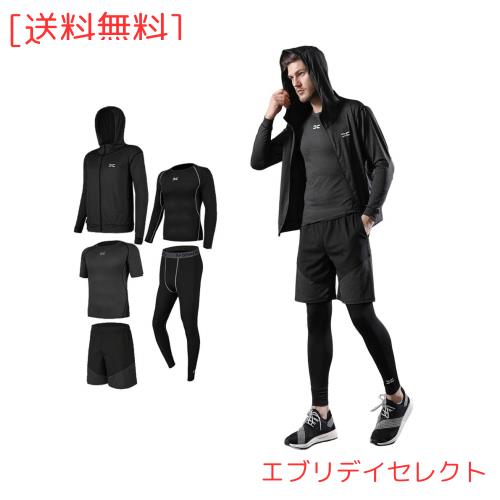 ※推奨サイズ表:Sサイズ:推奨体重55kg〜60kgMサイズ:推奨体重60kg〜70kgLサイズ:推奨体重70kg〜80kgXLサイズ:推奨体重80kg〜90kgXXLサイズ:推奨体重90kg〜100kgXXXLサイズ:推奨体重100kg〜110kg※サイズ表はあくまで目安です。より高い着圧効果を求める方はワンサイズ下をオススメします。 【セット内容】:【2点セット】半袖シャツ、ハーフパンツ【3点セット】半袖シャツ、ハーフパンツ、ロングタイツ【4点セット】半袖シャツ、長袖シャツ、ハーフパンツ、ロングタイツ【5点セット】半袖シャツ、長袖シャツ、ハーフパンツ、ロングタイツ、パーカー【パワーストレッチ】4針6糸で構成されており、非常に強度のある縫い目です。縫い目が平らなフラットシーマ縫製を採用し、より快適な肌触りと着心地を実現した高機能なコンプレッションウェアシリーズです。スポーツを、日常を、もっと快適に。オールシーズン使えるスポーツウェアです。【良質なスポーツ生地】高級なポリエステルで製作され、生地が柔らかいくて快適で、伸縮性に優れ、型崩れにくい、速乾性抜群です。柔軟で優しい肌さわりがありながら快適に着用でき、洗濯しやすい、吸汗で通気、抗菌で匂いを除却できます。長時間でも光沢を保持して色落ちません。【筋肉疲労を抑える】着圧によって身体に適度な圧力をかけることで、筋肉のブレ、つまり、筋肉の無駄な動きを抑えることができます。余分な動きを抑えることで、筋肉の疲労を軽減する効果があります。同等の運動をしても、コンプレッションウェアの着用は、未着用時と比べて疲れにくくなるだけでなく翌日の回復も早めます。【穿き心地が快適】通気性・速乾性:通気性が良く、抜群な速乾性という特徴で、水や汗などの冷却による体の冷えをおさえ、快適性を保ちます。【筋肉保護】運動による筋肉の動きを正しい方向へ導き、激しい運動による筋肉損傷を機能的に改善します。【身体代謝】人体の中心である背筋が矯正されることにより、血液の循環を促進し、身体全体の代謝を改善させます。血液循環の促進と身体代謝の改善により、トレーニング効 果が大幅に上昇します。 【多用途】スポーツフィットネス、ジョギング、ボクシング、散歩、ランニング、筋肉トレーニングなどの時に着けていただけます。サイクリング、登山、レジャーなど場合、軽量でフィット感と抜群の通気性すべて満足!一年間すべての季節に適用します!春、夏、秋、冬の季節はコロケーションして着用できます!