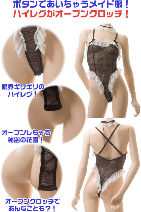 ボタンであいちゃう! オープン クロッチ ハイレグ メイド服 シースルー メイド コスプレ コスチューム セクシー ランジェリー 下着 女性 レディース 勝負 過激 グッズ おもちゃ エロ かわ エッチ エロい エッチな sexy えっち えろ せくしー