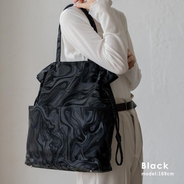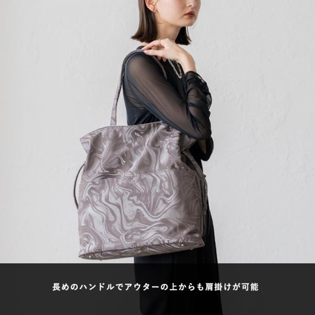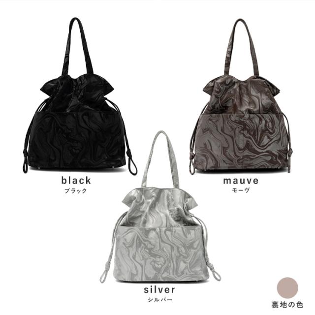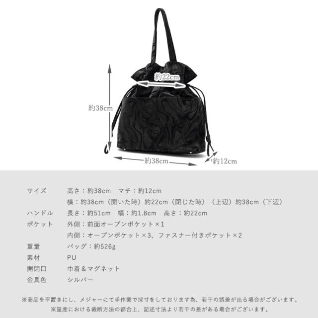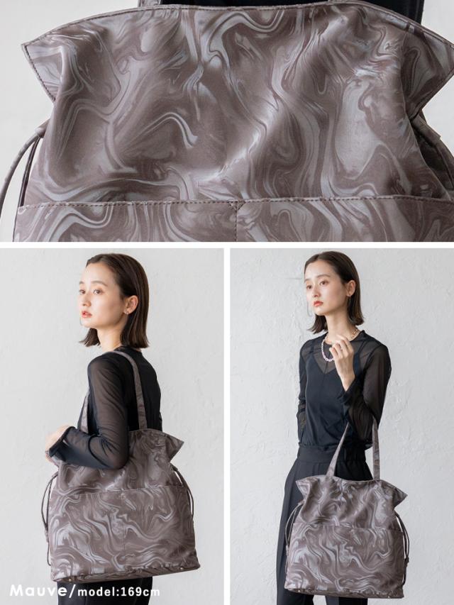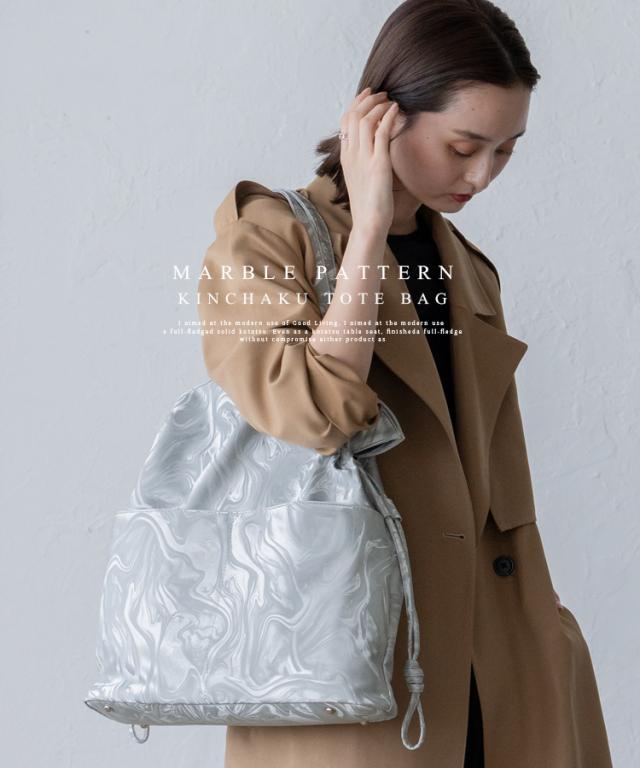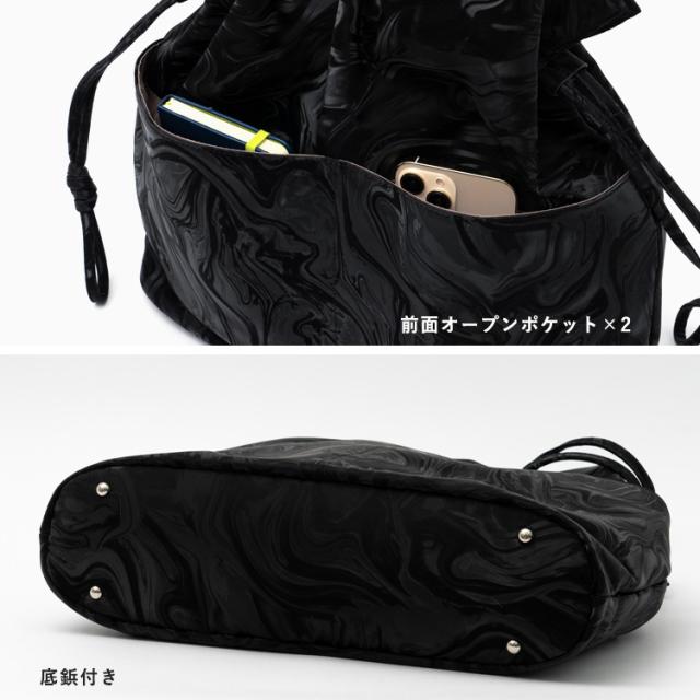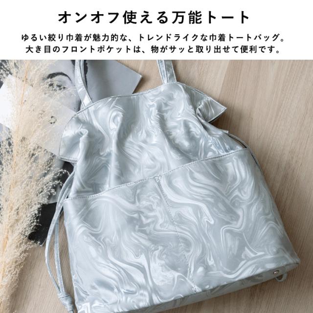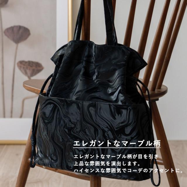 トートバッグ レディース 大きめ 巾着バッグ マーブル模様 バッグ フロントポケット a4 大容量 おしゃれ ロングハンドル 巾着トート inb-10172p 【aroco/アロコ】新生活